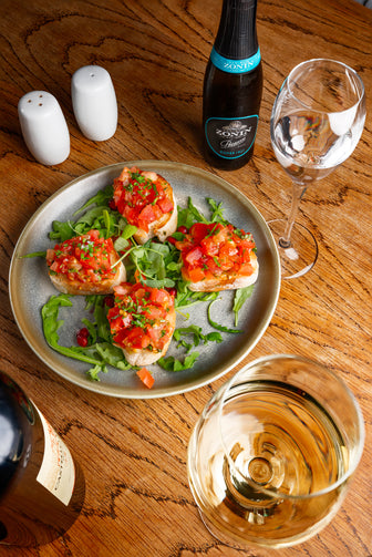 Chopped vine tomatoes, basil leaves, garlic, oregano, evoo, parsley on toasted ciabatta served on bed of rocket leaves